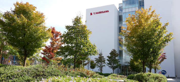 香料会社の庭というと、どのようなものを想像されるでしょうか。長谷川香料では、神奈川県川崎市にある研究部門の総合研究所が竣工した2009年に植栽を一新しました。研究所入り口の一角にビオトープを配置し、研究棟を取り囲むように季節を感じる香りの庭として整備しました。今回は香りの庭と、庭から始まる研究活動についてご紹介します。