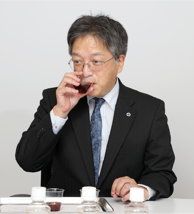 大橋 私もコーヒーとの出会いは旦部先生と同じで、子どもの頃飲んだコーヒー牛乳ですが、学生の頃はコーヒーを自分で淹れて飲むことはありませんでした。当社に入って初めに配属されたのが、コーヒーやお茶などの植物抽出物の開発部署で、コーヒーを飲む機会が増え、産地や焙煎度、淹れ方などによって風味が大きく異なることに気付きました。そして、家でも自分で豆を挽いて、淹れ方や豆の種類をいろいろと試すようにもなりました。その後、香りの分析をする部署に異動して、コーヒーの風味の違いが、どのような香り成分によるものかということに興味が湧きました。
